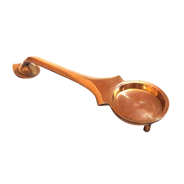 • Handcrafted auspicious piece of art made in brass with casting technique.In Hindu puja ceremonies, camphor is burned in a ceremonial spoon for performing aarti. This is an essential for your puja room