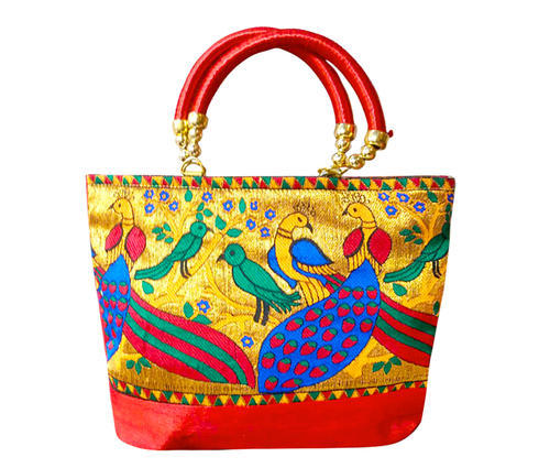 - This Ethnic Hand Bag in different colors with a Magnet Button closure and available online.
