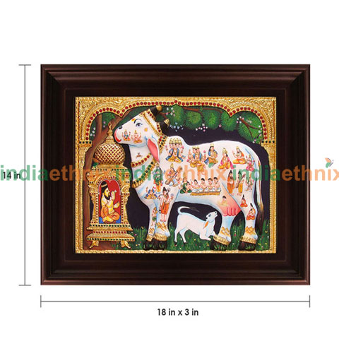 The Indian ethnic Gold Plated Kamdhenu Framed Tanjore Painting is available online in USA at www.indiaethnix.com and will be shipped to your Home!