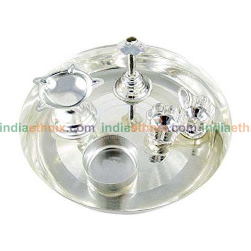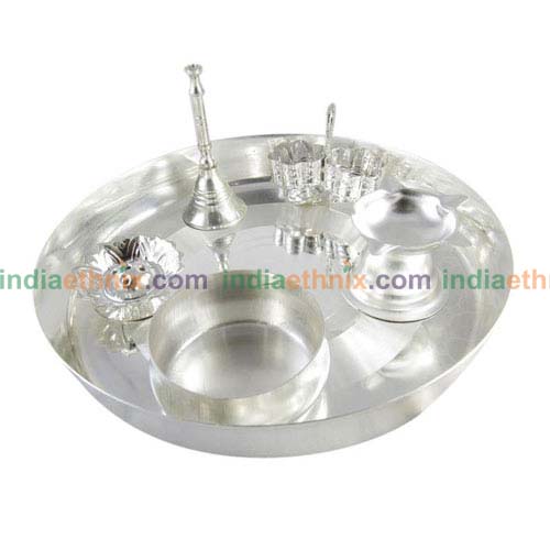 The Indian ethnic product-Silver Plated Pooja Thali Set is available online in the USA at www.indiaethnix.com and will be shipped at your doorstep!