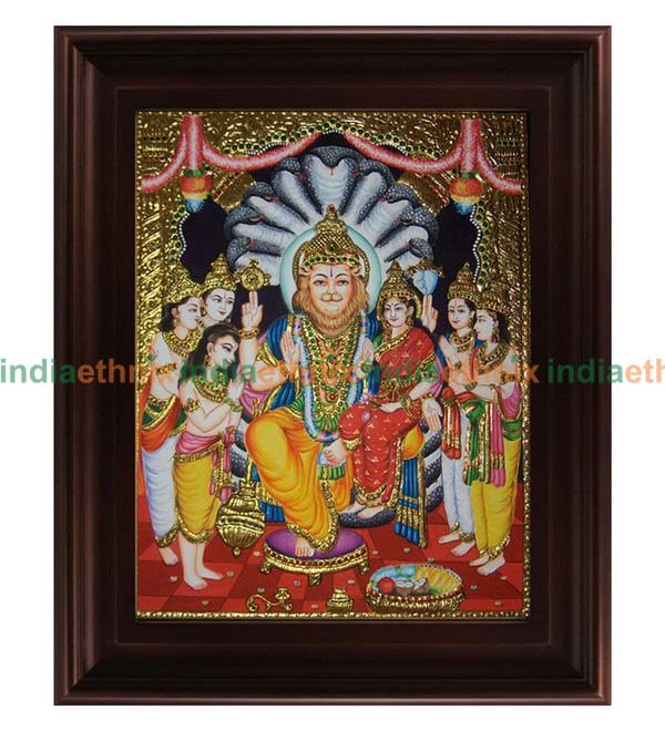 The Indian ethnic Tanjore Painting Lakshmi Narasimha is available online in the USA at www.indiaethnix.com and will be shipped to your Home!