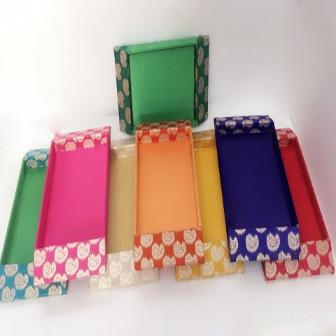Wedding Trays With Banaras Silk – Rectangle Shaped